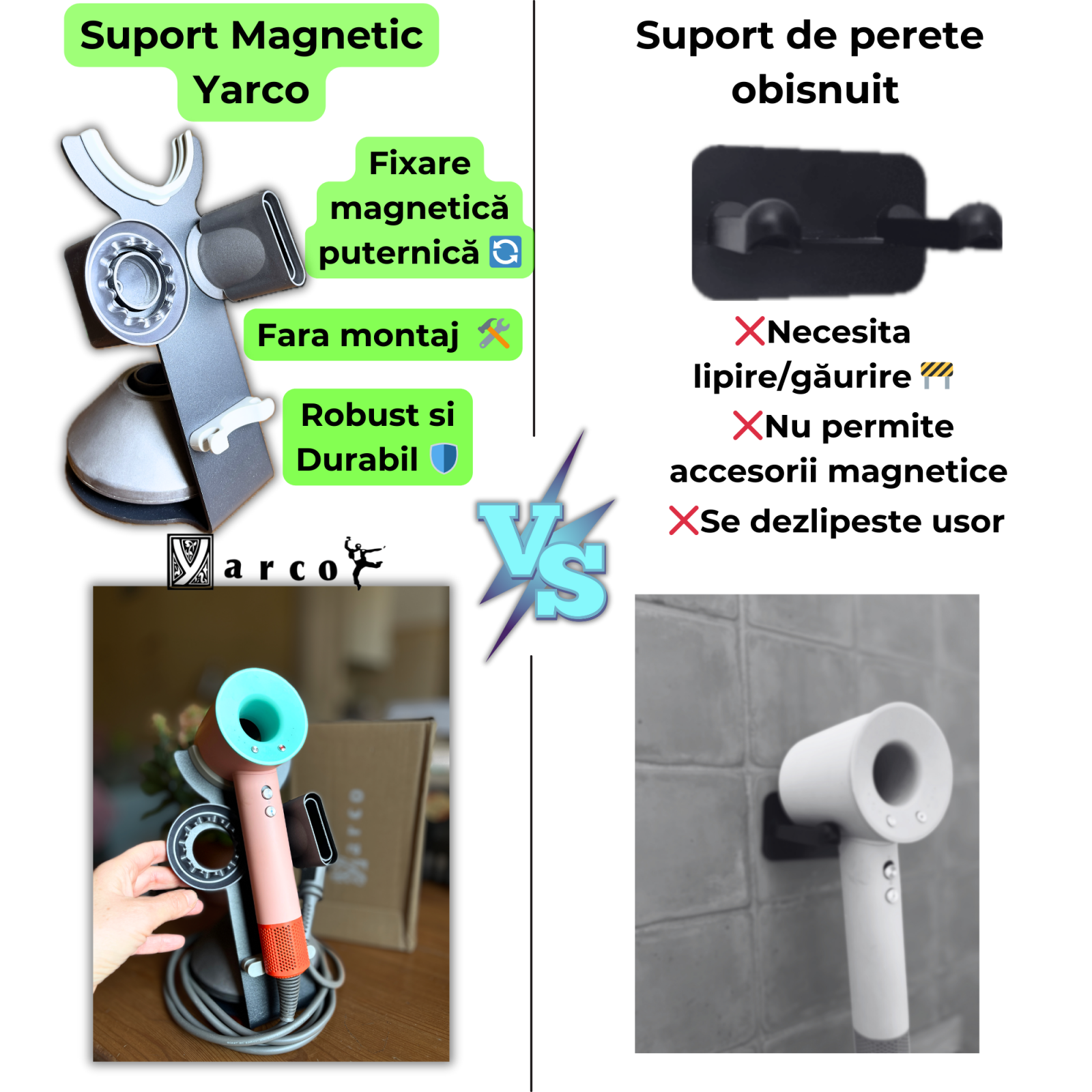 📢 Suport Magnetic Premium pentru Uscător de Păr YARCO – Organizare, Protecție și Eleganță!